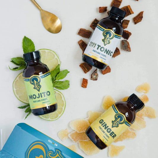 Cocktail Syrup Sampler Set - Ginger, Rose Tonic, Mojito