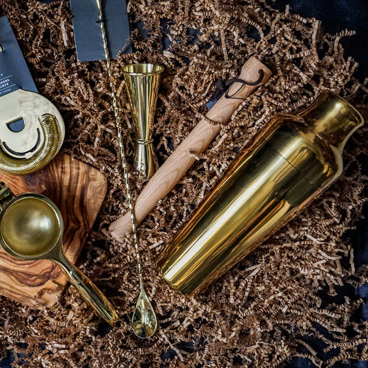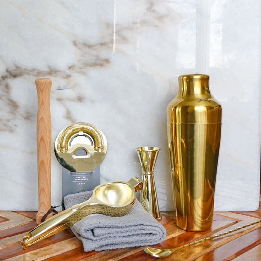 Gold Small Cocktail Set - Shaker, Jigger, Strainer, Spoon, Muddler, Juicer