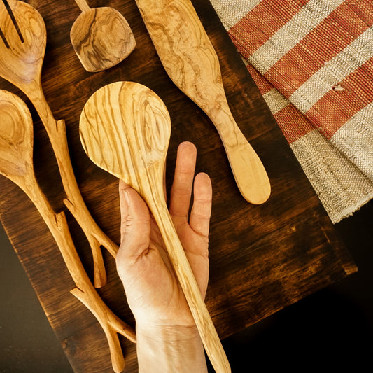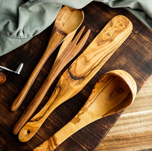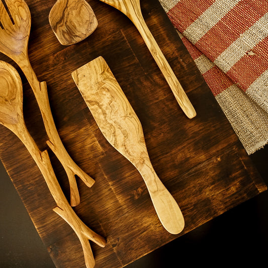 Simple Olive Wood Serving Utensils Set