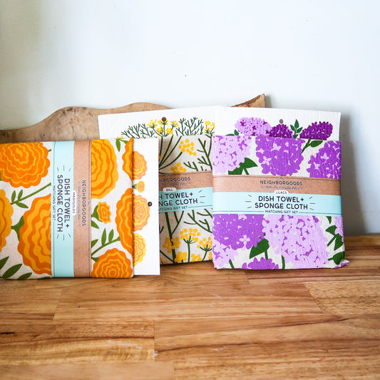 Marigold Dish Towel + Kitchen Sponge Set